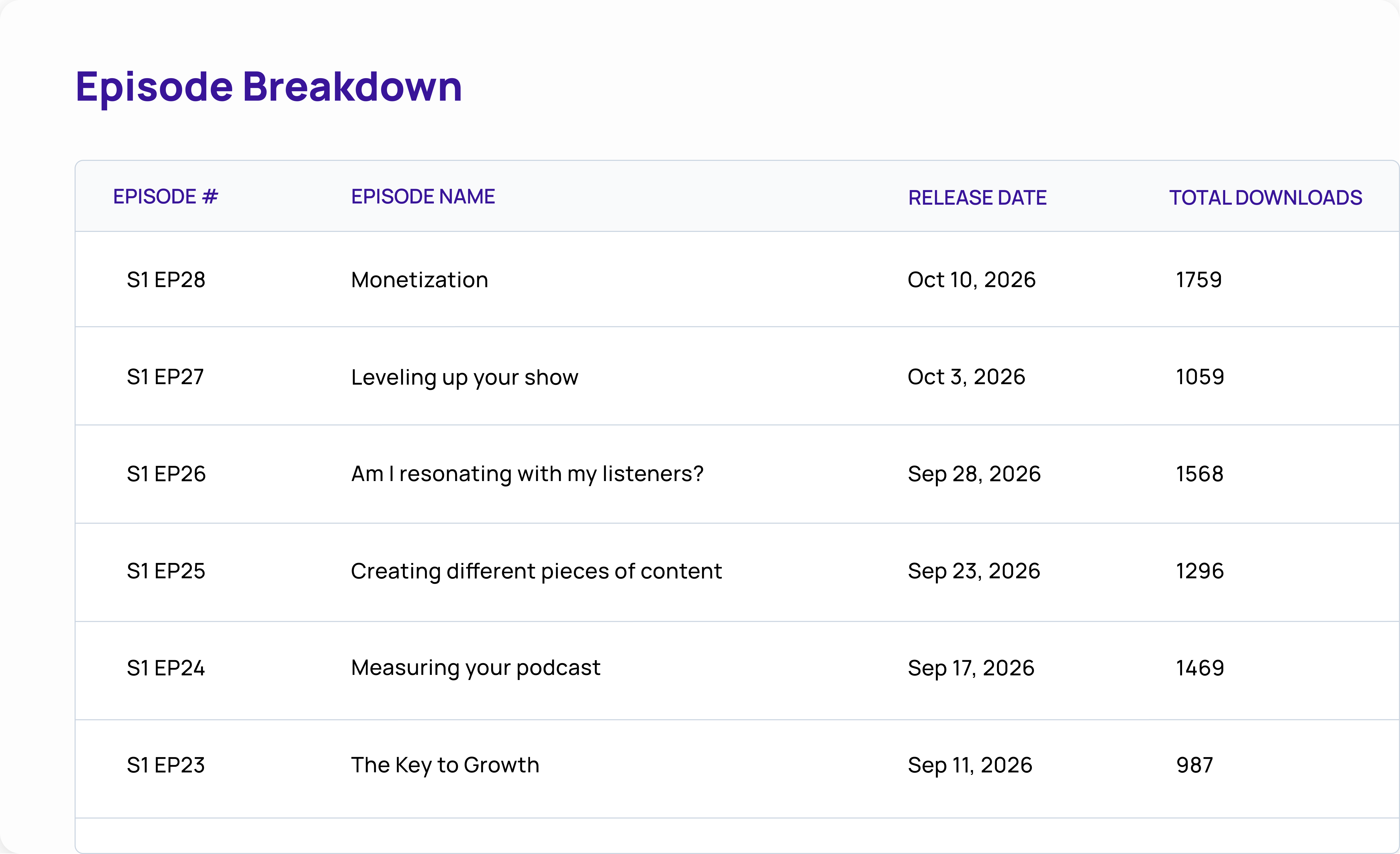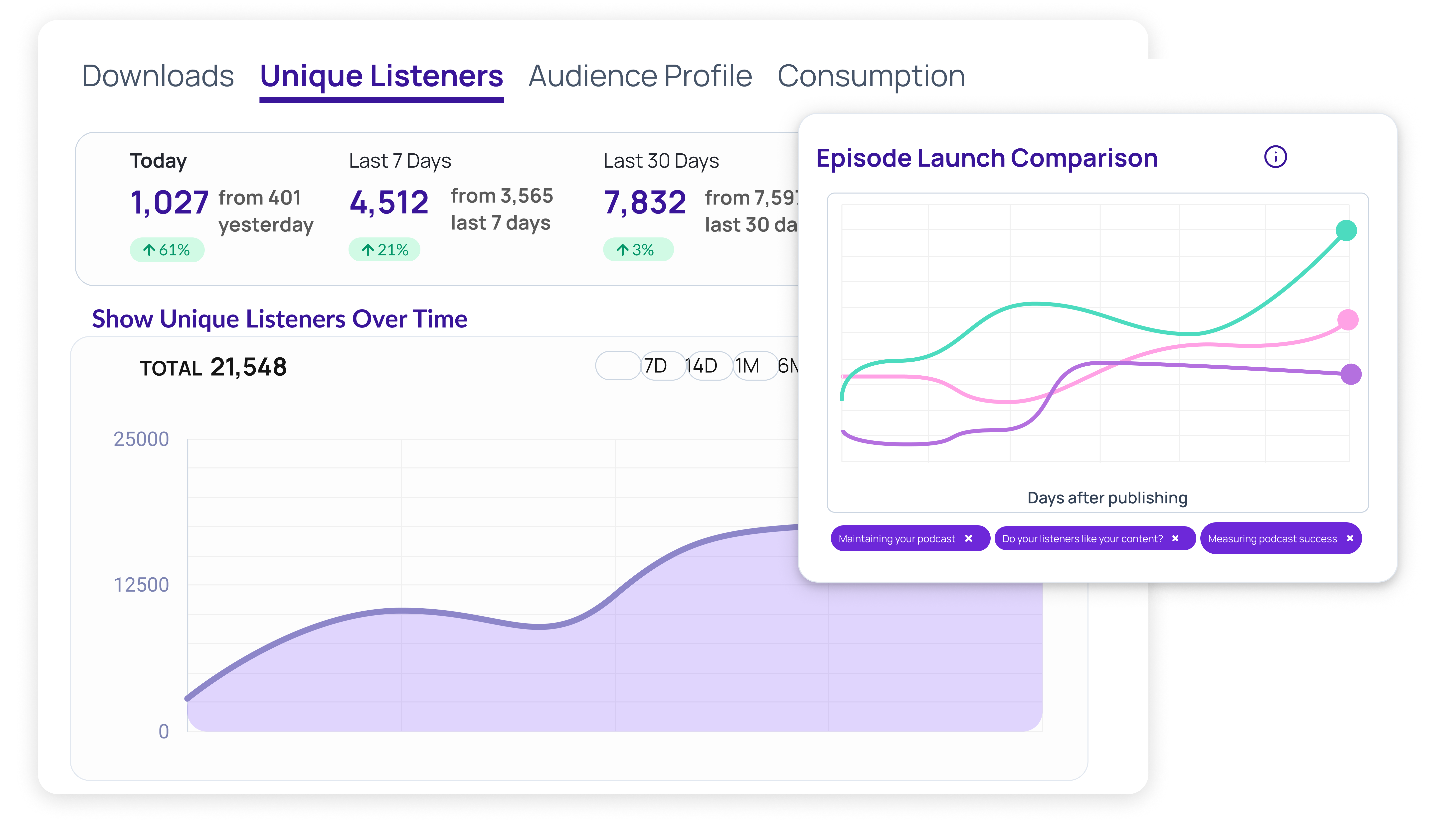 Unique listener data is more indicative of your audience's true size. You can also use this number to estimate how many loyal listeners you have.