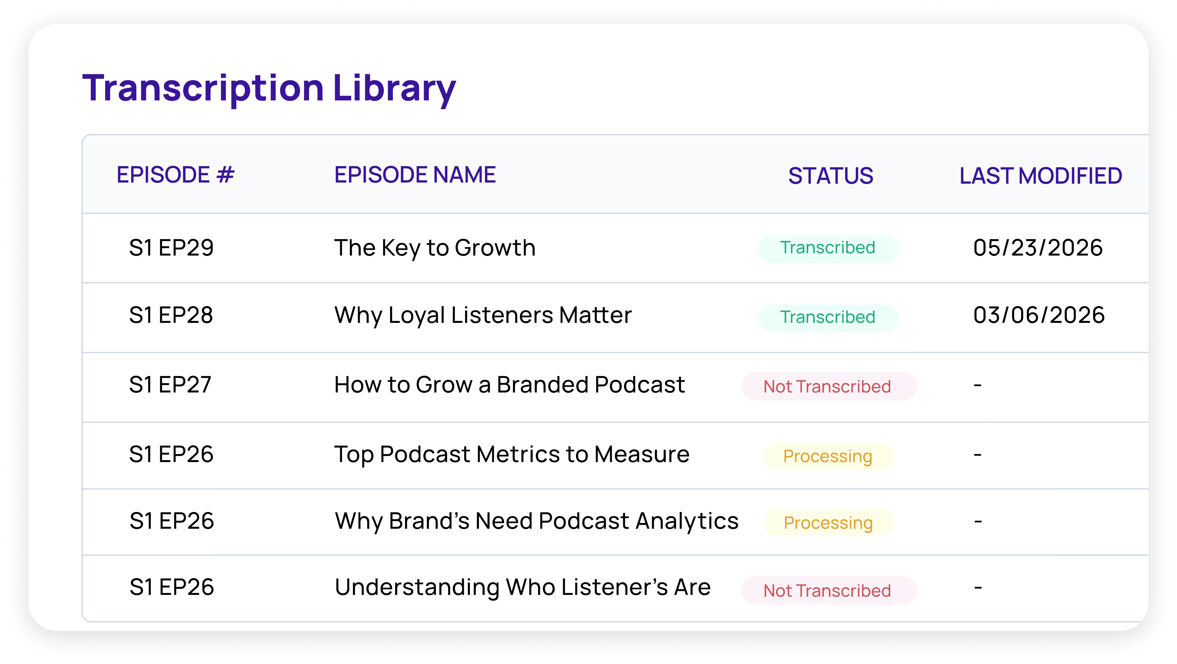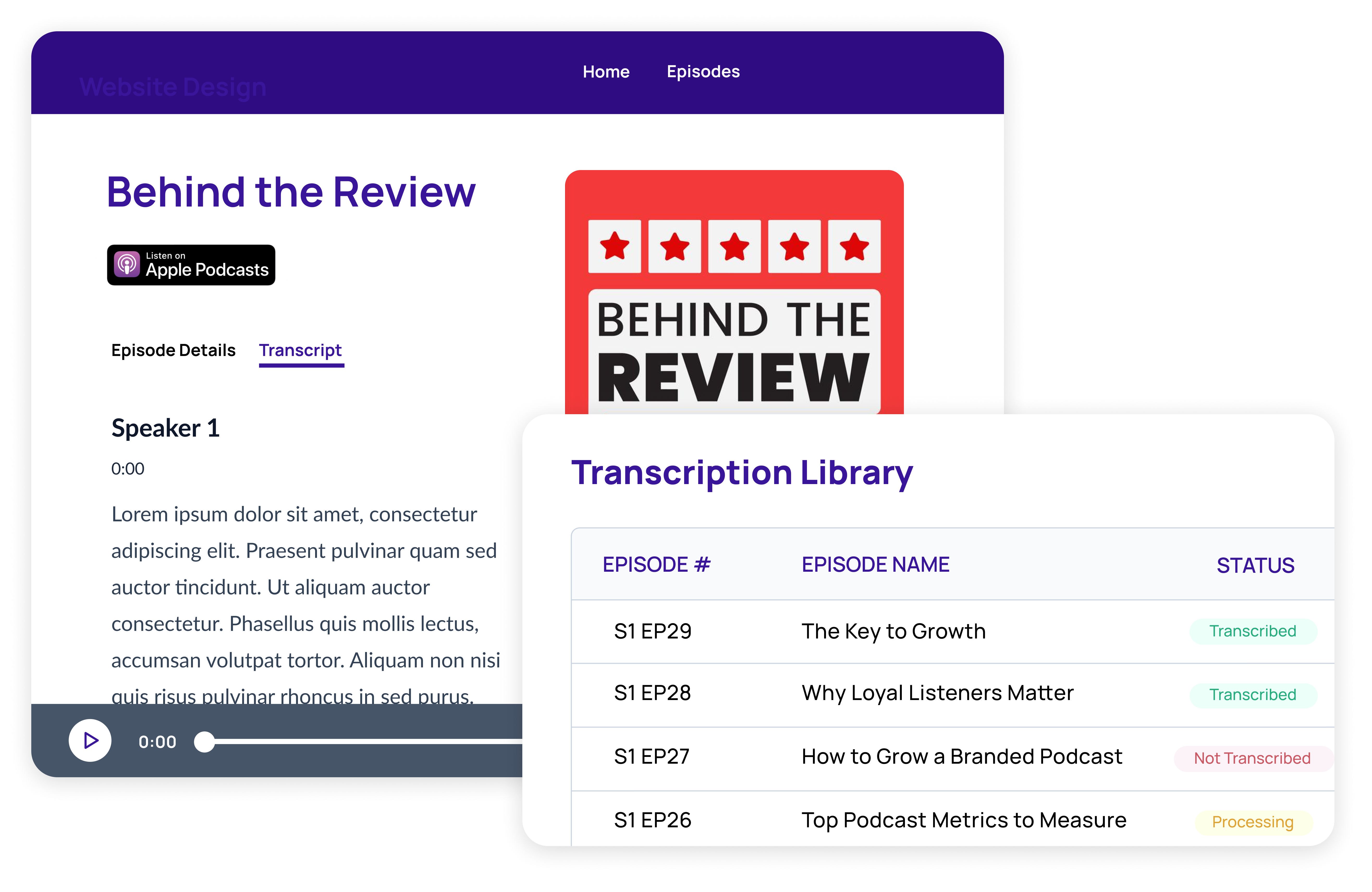 No extra fees or usage restrictions. Create transcripts for every episode you produce.
